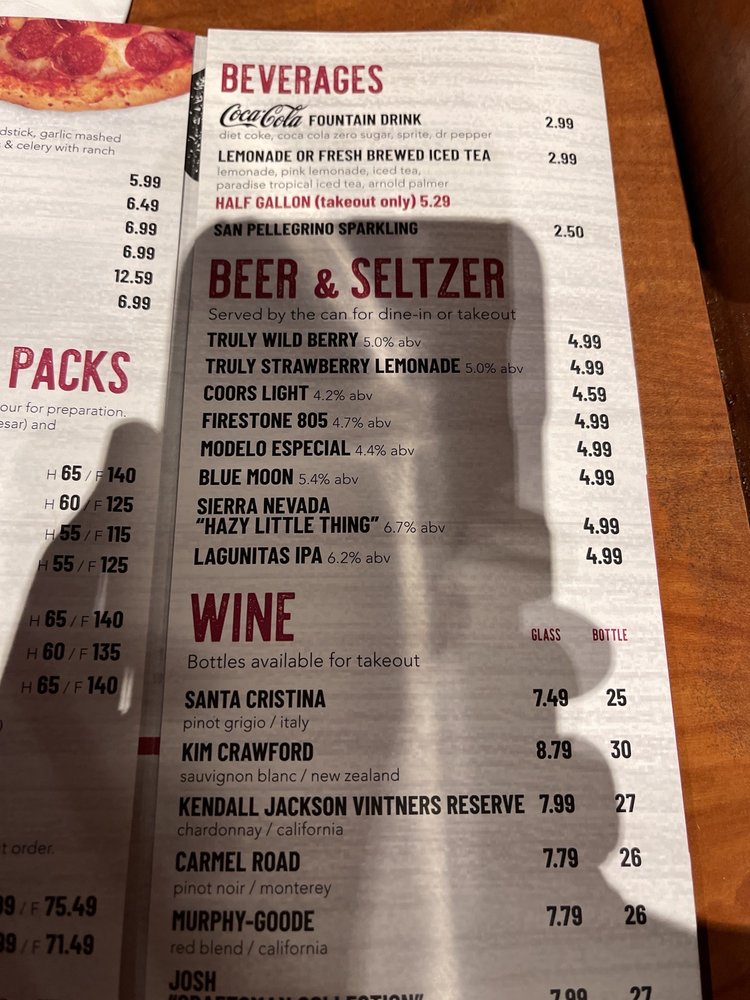Select your choice of salad, pizza, pasta, plus an order of breadsticks. Available Every Day. Open to Close. For Takeout Only. For only $, add your choice of a slice of carrot cake, slice of cheesecake, half gallon of freshly brewed iced tea, paradise tropical iced tea, Arnold palmer, or lemonade.