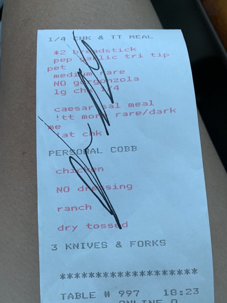 oz tri tip served with salad (garden or caesar) or side and freshly baked breadsticks.Takeout available in select locations.