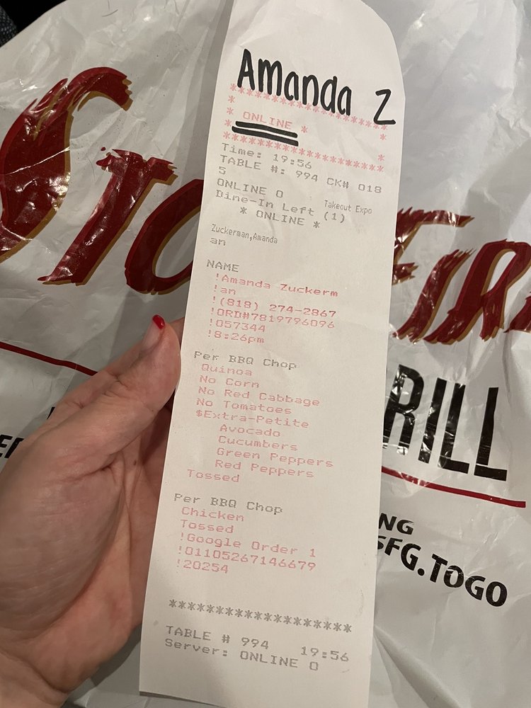 The chicken and tri tip for includes a half-grilled chicken, oz. of tri-tip, BBQ chopped salad (vegetarian), and freshly baked breadsticks